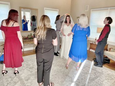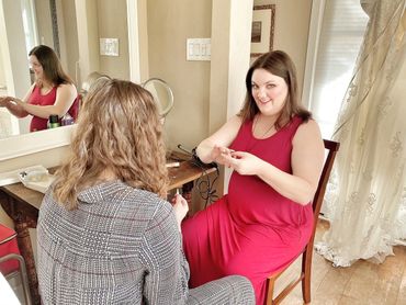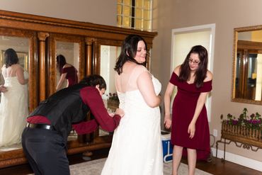 Having a great time putting on the finishing touches in the bridal suite with family & friends.