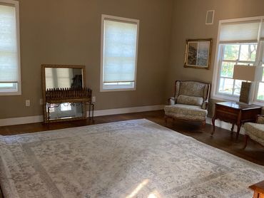 Lovely gold and cream-colored chairs provide seating for up to 30 people. In the entry room, there are chairs where guests can sit when they arrive, a place for them to sign your book and leave gifts, flat screen TV's where you can plug-in and play your personal pics.